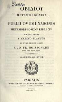Bibliografia: É. Egger, Mémoires de littérature ancienne, Paris, A. Durand 1862, pp. 1-15; P. Leguay, Boissonade (Jean François de Fontarabie), in Dictionnaire de biographie française, Paris, Librairie Letouzey et Ané 1954, tome VIe, col. 856-857.