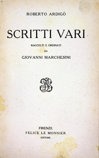 Bibliografia: G. Marchesini, La vita e il pensiero di Roberto Ardigò, Milano, Hoepli, 1907; A. Levi-L. Limentani, Bibliografia ardighiana, «Rivista di filosofia», XIX (1928), pp. 400-428; F. Amerio, Ardigò, Roma, F.lli Bocca, 1956; A. Bortone, Ardigò, Roberto, in Dizionario biografico degli Italiani, Roma, Istituto della Enciclopedia Italiana, vol. 4 (1962); W. Büttemeyer, Roberto Ardigò e la psicologia moderna, Firenze, La Nuova Italia, 1969; Roberto Ardigò nella cultura italiana ed europea tra Otto e Novecento, n. monogr. «Rivista di storia della filosofia», I (1991); T. Pironi, Roberto Ardigò, il positivismo e l’identità pedagogica del nuovo stato unitario, Bologna, Clueb, 2000; A. Savorelli, Ardigo, Roberto, in Il Contributo italiano alla storia del Pensiero - Filosofia (2012).