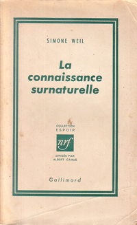 Une partie de sa bibliothèque ayant été dispersée, à la BnF on trouve son exemplaire des Fragmente der Vorsokratiker de Diels (4e édition, 1922, 2 vol.), car son écriture est reconnaissable dans des annotations manuscrites ; en outre, au verso de la page de garde du volume I et sur le contreplat supérieur du vol. II, figure le nom de son amie et biographe Simone Pétrement et, la page de titre de chacun des volumes,  porte un cachet avec la mention DON 94 0244. Il s'agit donc de l'exemplaire ayant appartenu à S. Weil, exemplaire que ses parents ou son frère ont donné à Simone Pétrement et qui plus tard (après la mort de celle-ci en 1992, puisque « 94» indique l'année du don) a été légué à la BnF et versé au fonds général. Il est plus que probable que d'autres ouvrages de la bibliothèque personnelle de S. Weil aient suivi le même chemin.