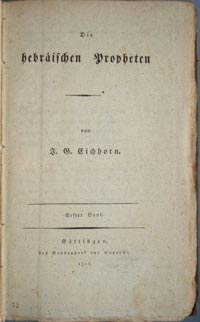 Bibliografia: E. Sehmsdorf, Die Prophetenauslegung bei J.G. Eichhorn, Göttingen, Vandenhoeck & Ruprecht 1971; G. D’Alessandro, L’illuminismo dimenticato: Johann Gottfried Eichhorn (1752 - 1827) e il suo tempo, Napoli, Liguori 2000.