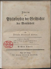 Opere principali: Abhandlung über den Ursprung der Sprache (Berlin, Voß 1772); Auch eine Philosophie der Geschichte zur Bildung der Menschheit (Riga, Hartknoch 1774); Ideen zur Philosophie der Geschichte der Menschheit (Riga, Hartknoch 1784-1791); Gott. Einige Gespräche (Gotha, Ettinger 1787); Briefe zur Beförderung der Humanität; zehn Sammlungen (Riga, Hartknoch 1793-1797); Eine Metakritik zur Kritik der reinen Vernunft (Leipzig, Hartknoch 1799).