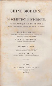 Bibliothèque chinoise. Catalogue des livres chinois composant la bibliothèque de feu M. G. Pauthier, Paris, Ernest Leroux 1873, 92 p., in 8°.